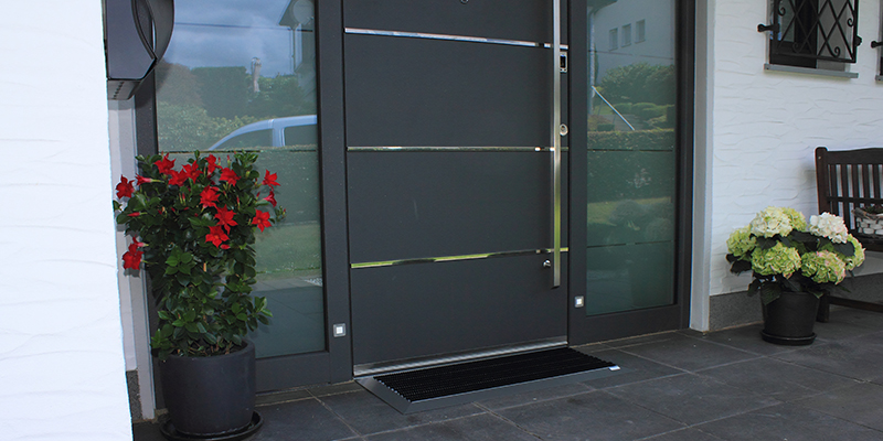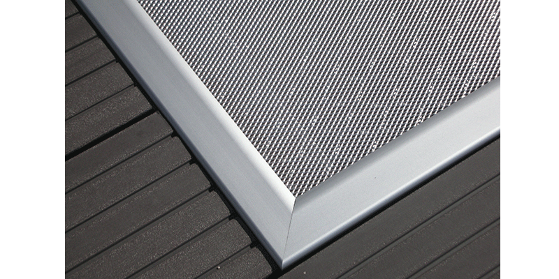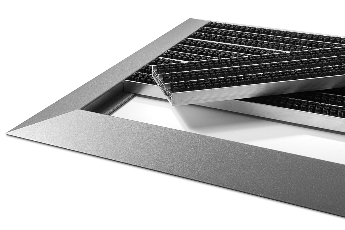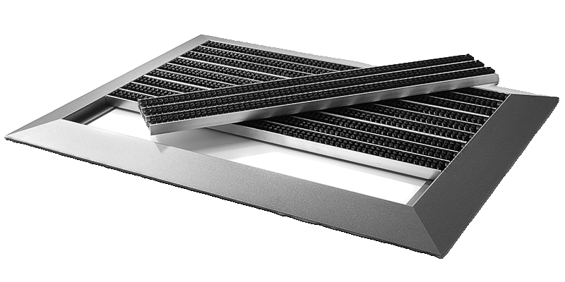 Auf Maß gefertigt, Umweltfreundlich, Pflegeleicht, Robust, Wetterfest und UV-beständig, Bürsten Austauschbar, Barrierefreiheit durch abgeschrägten Profil, Rutschsicherung durch Gummiunterlage.